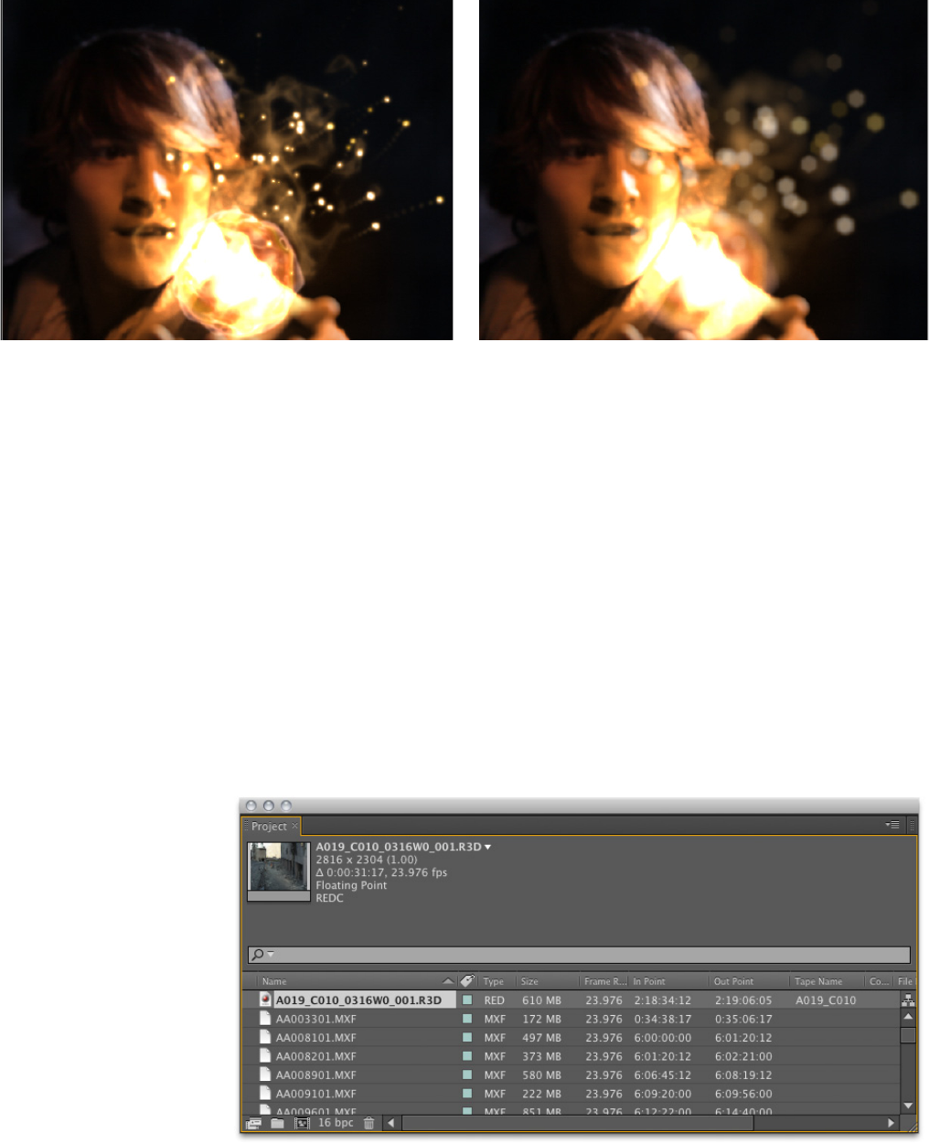 Aer Eects can read embedded source timecode data, enabling more precision when working directly with source